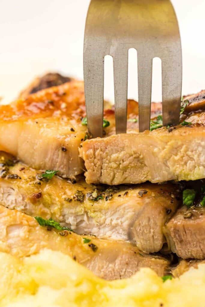 - Bone-in pork chops – You can use any kind of chops but I like loin chops. If you use boneless chops, cook them a bit less.